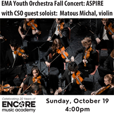 EMA-YO Fall Concert with CSO guest soloist, Matous Michal, violin. Featuring the Prelude Orchestra, conducted by Jillian Forbes, Intermezzo Orchestra, conducted by Tim Janiszewski and Symphony Orchestra, conducted by Terry Foster.