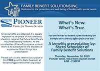You are invited to a free benefits workshop presented by Sherri Schneider of Family Benefit Solutions.
