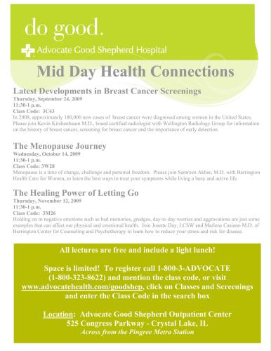 Free Community Lecture! A light meal will be served. To register call 1-800-3-ADVOCATE (1-800-323-8622) and mention class code: 3C43.