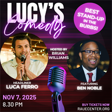 Best stand-up in the burbs! Raue Center brings the best stand-up comics in the Chicagoland area close to home with Lucy’s Comedy, Raue Center’s longest-running program! Curated by comic and radio personality John DaCosse.