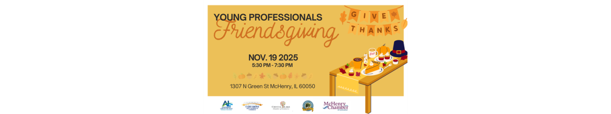 - Compete in our Friends-Giving “Friendly Feud” — the winning team gets to pie a McHenry Chamber member of their choice!
